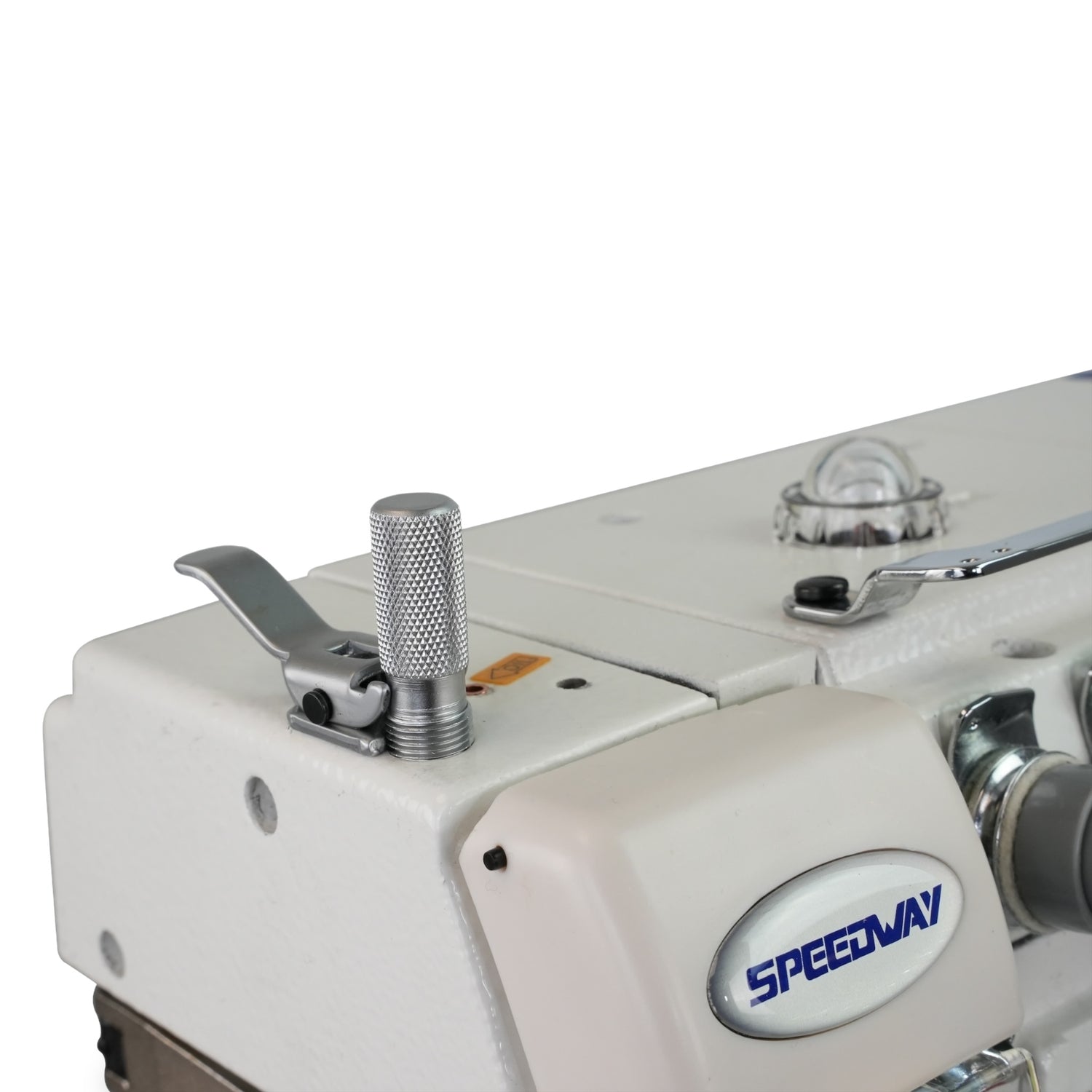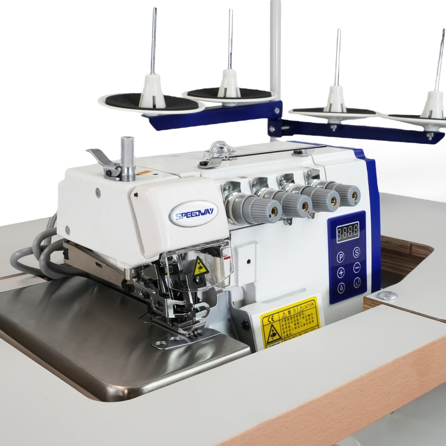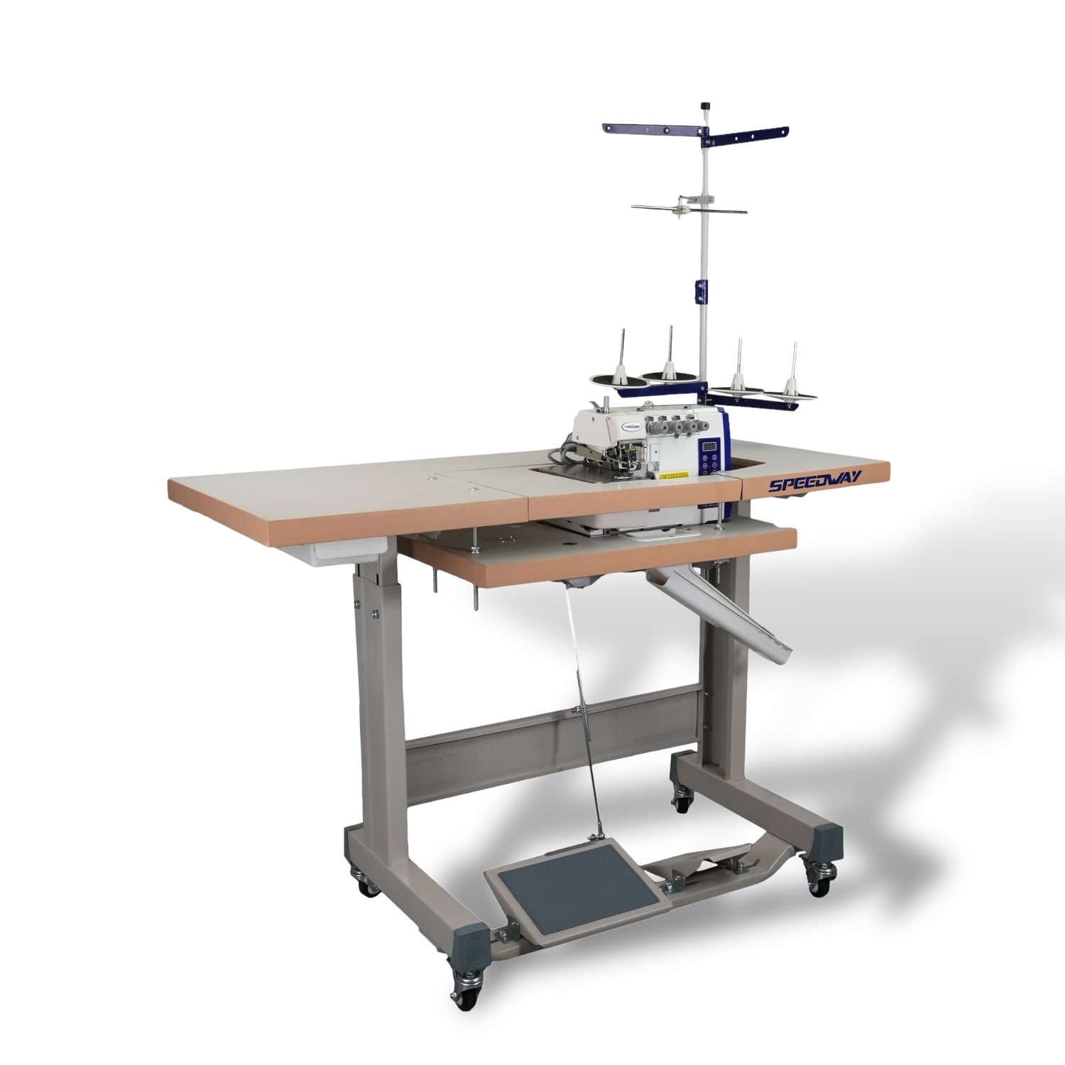 SPEEDWAY SW 747 e 4 Thread Overlock Industrial Sewing Machine Assembled with Direct Servo Motor, Fully Submerged Table Setup With Wheels