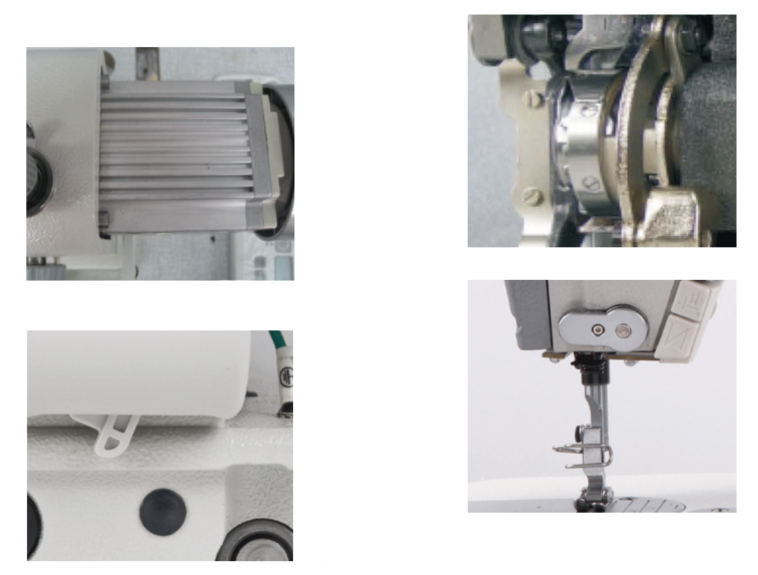 Mini direct drive servo motor system provides quick start sewing, precise positioning, low noise, and no belt dust.