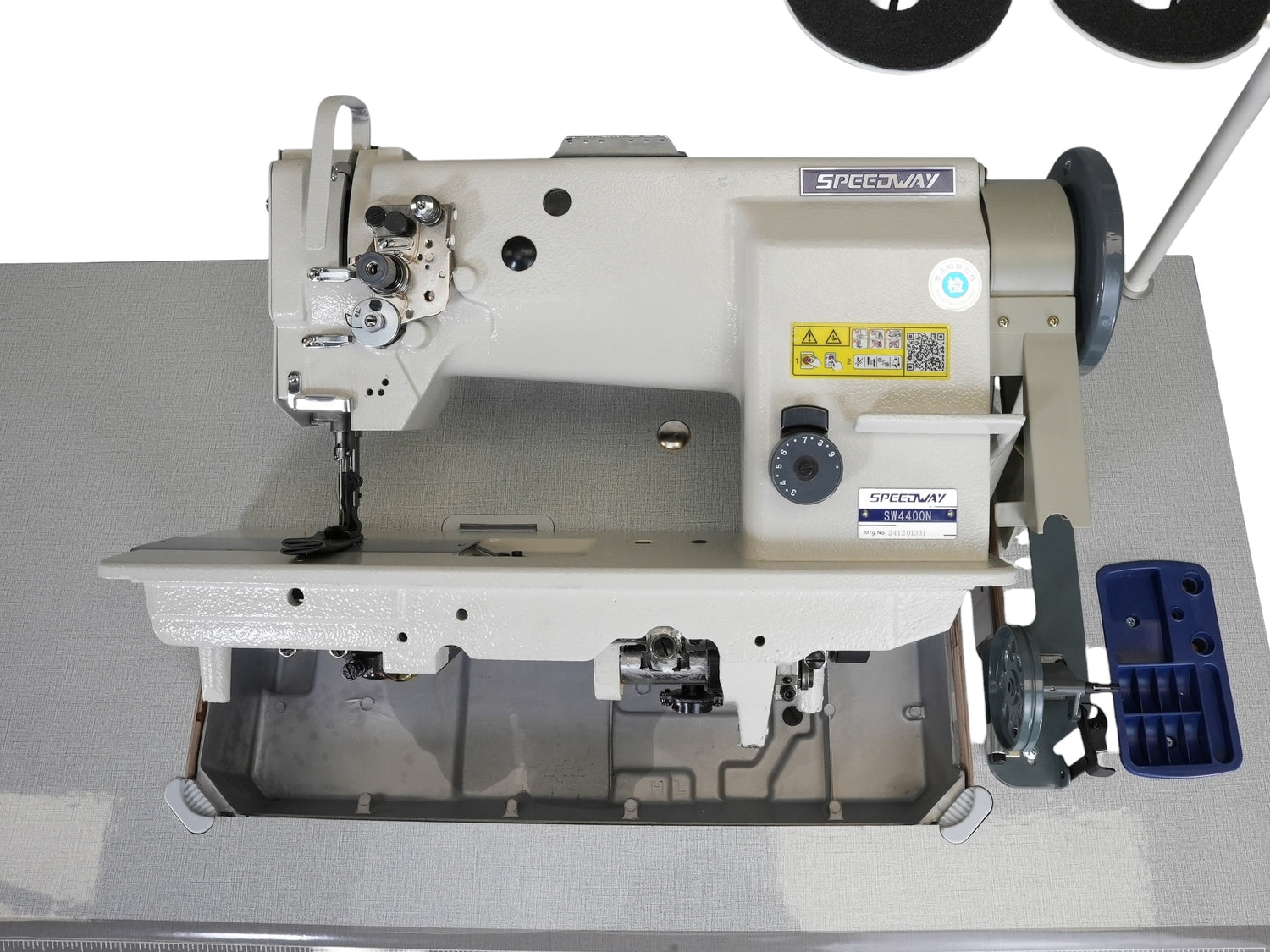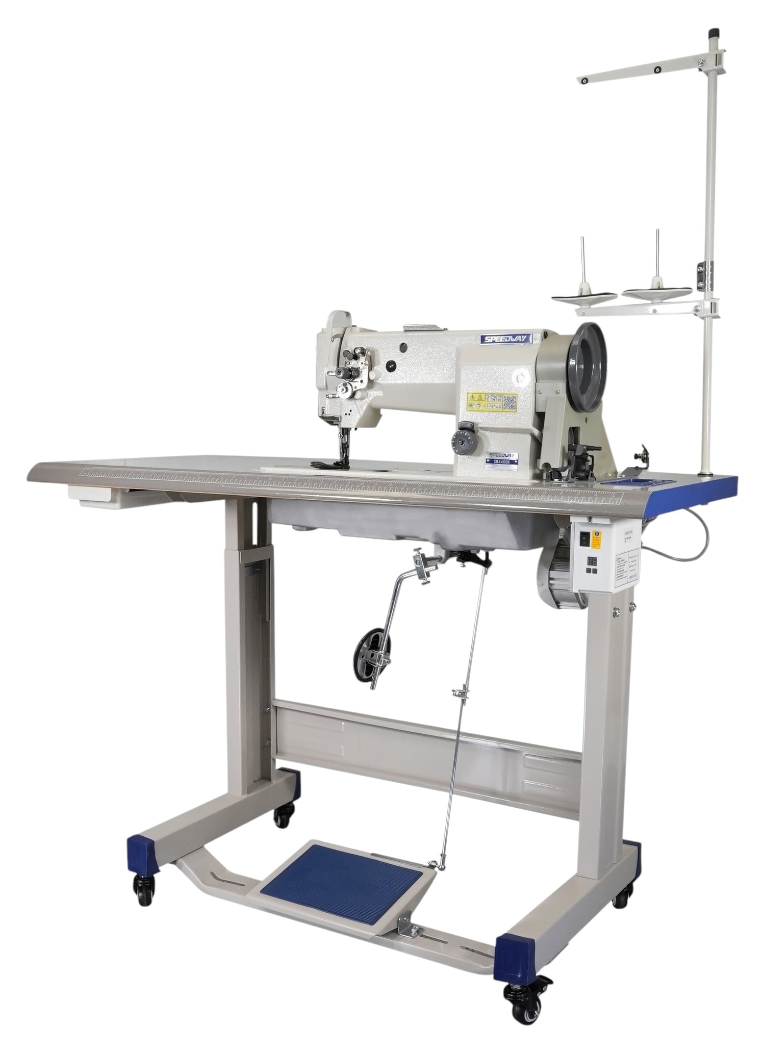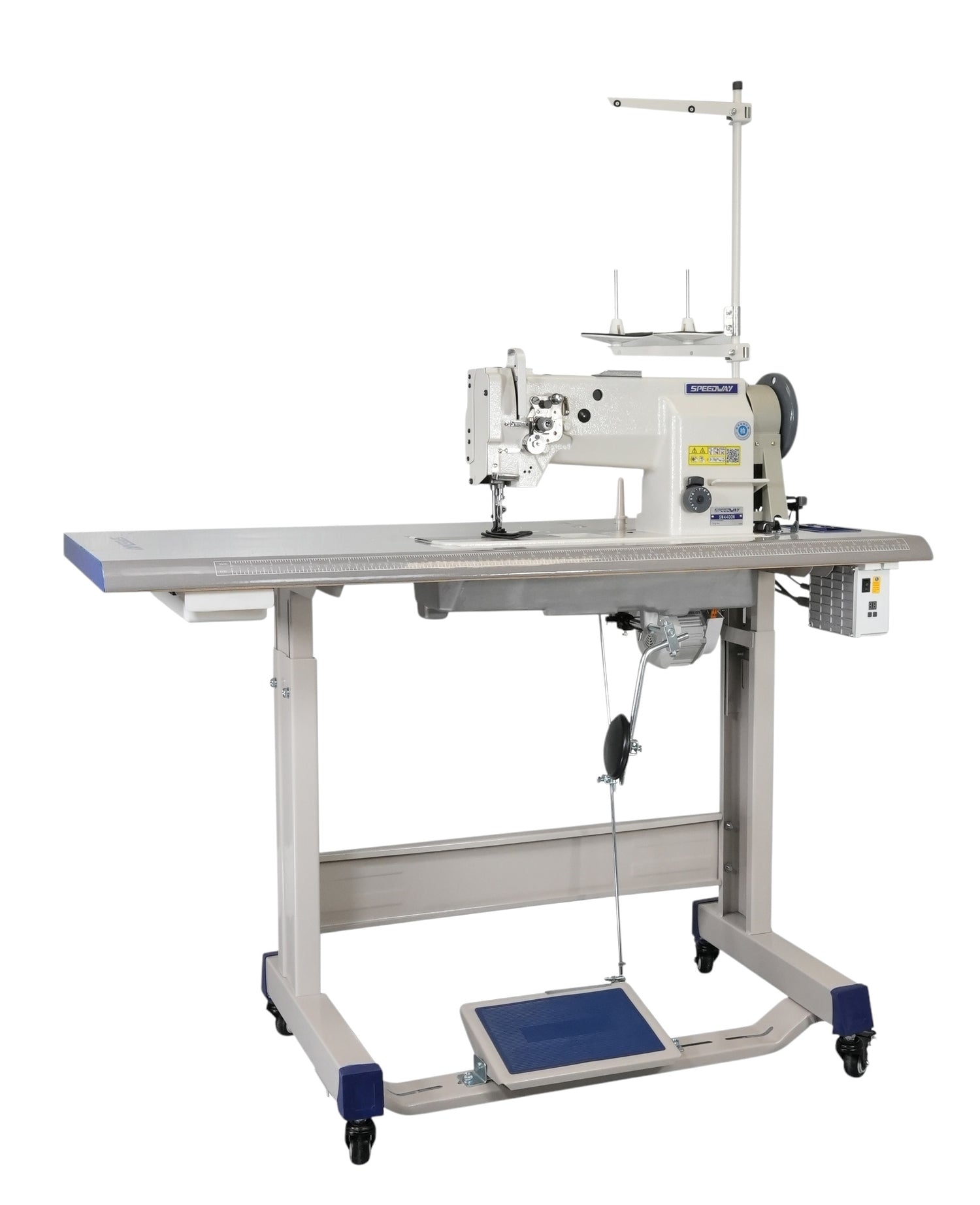 SPEEDWAY SW-4400N Máquina de coser con pie para caminar, alimentación al unísono, resistente, de una sola aguja, ensamblada con servomotor, mesa y soporte incluidos