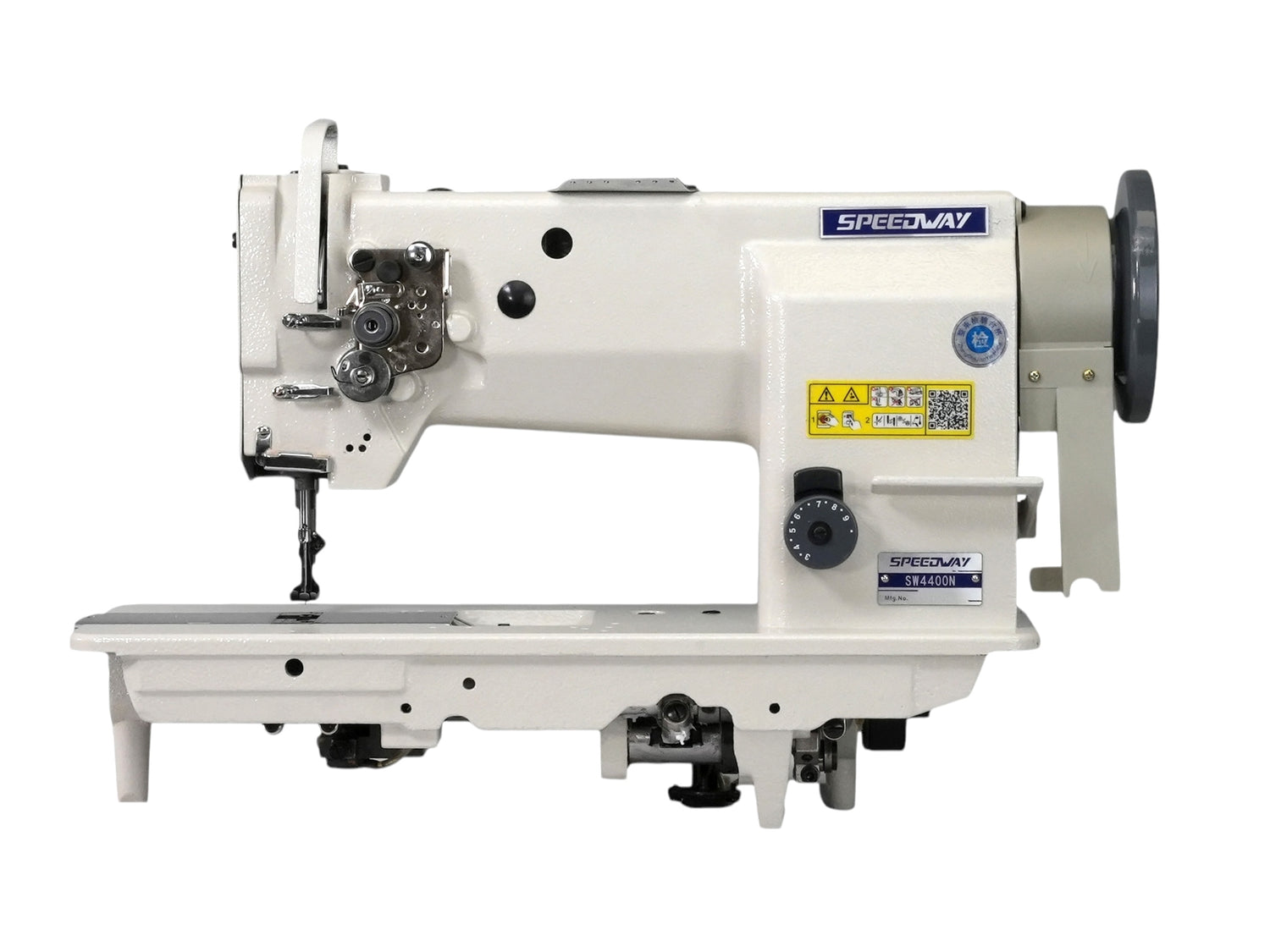 La máquina básica y su destacada respuesta al cosido de materiales pesados. El Speedway SW-4400N con gancho grande de eje vertical. El mecanismo de alimentación único promete una excelente eficiencia de alimentación. La máquina es aplicable a una amplia gama de materiales pesados para uso industrial, como cinturones de manipulación de carga y contenedores, así como a materiales de uso general, como asientos de automóviles, sofás y bolsos, contribuyendo así a mejorar la calidad y aumentar la productividad.