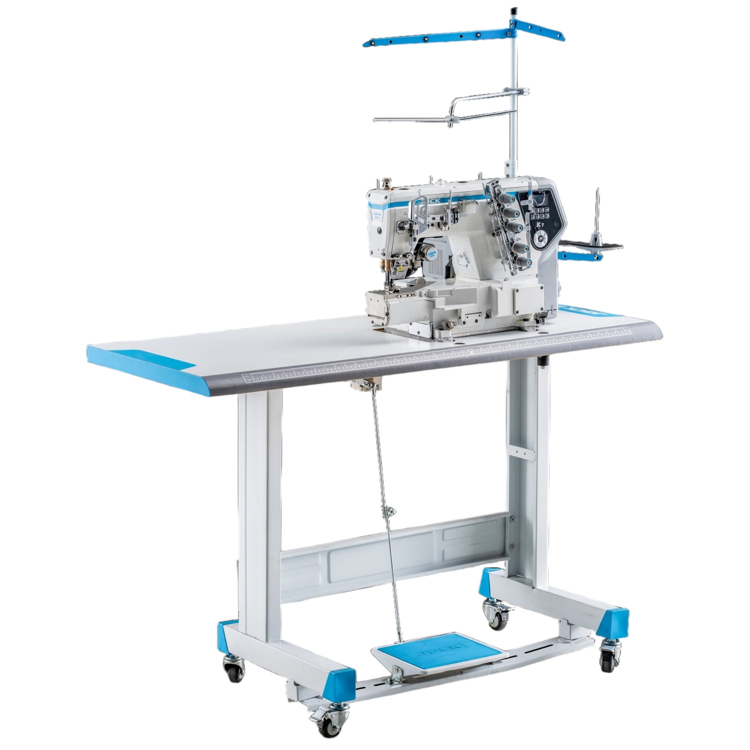 JACK K7-UT-01GBX364 (AI Smart Interlock) Cylinder Bed Intelligent Fabric Adaptation High-Speed Direct Drive 3 Needle Coverstitch with Automatic Thread Trimmer, Presser Foot Lift Complete Assembled with Table and Stand Included