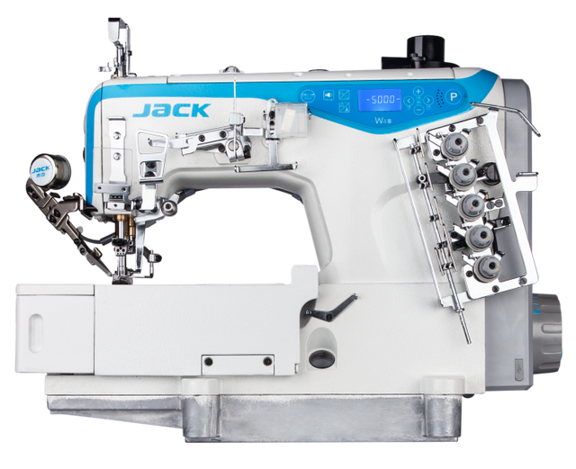 - JACK W4S UT es una máquina interlock electrónica con 2-3 agujas y 4-5 hilos.
