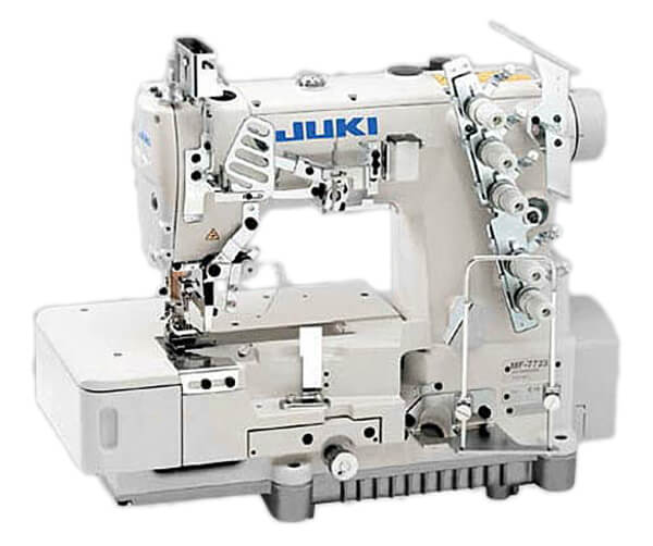JUKI MF-7523C11 - Máquina de coser industrial de 3 agujas con puntada de recubrimiento plana para encuadernación, con mesa y servomotor incluidos
