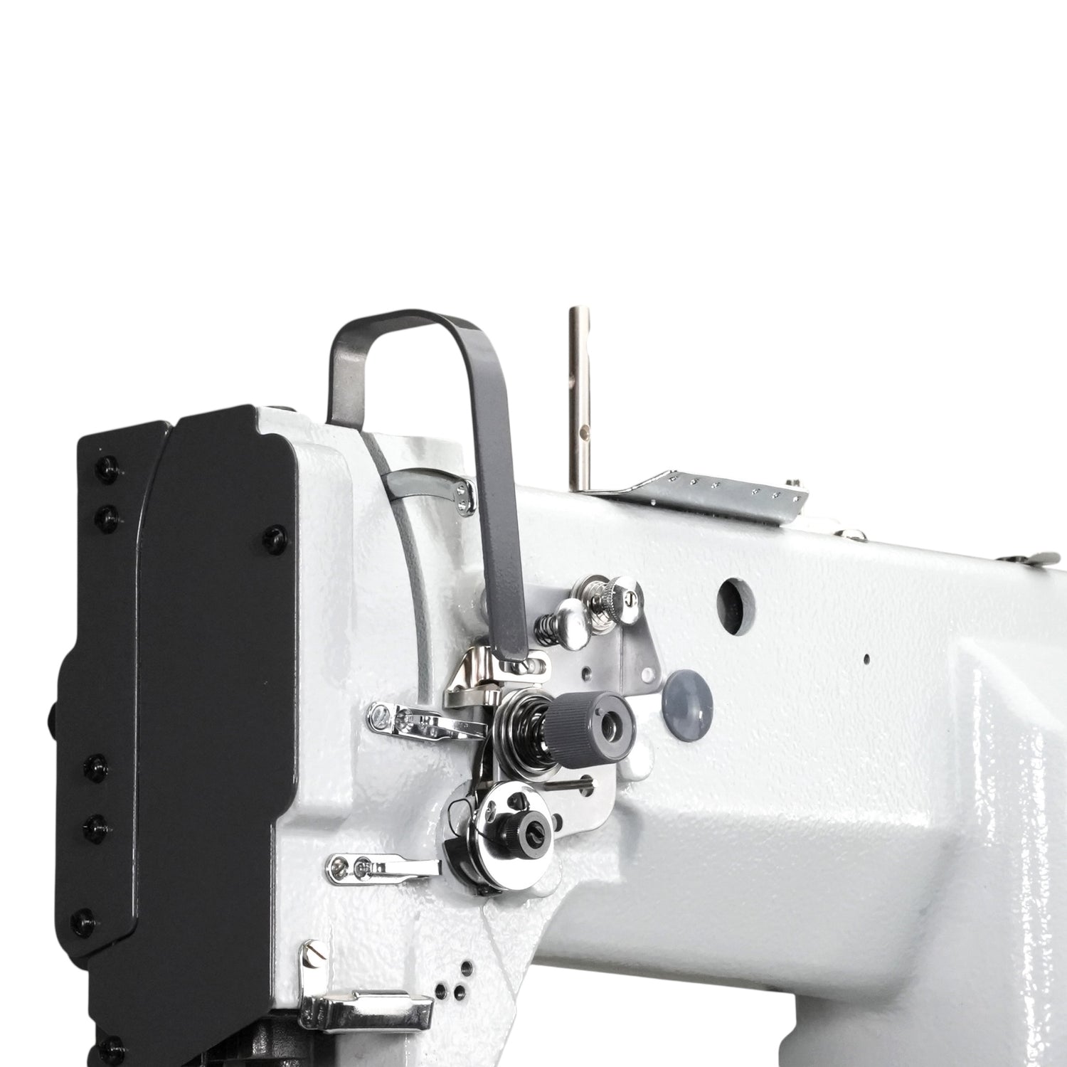 Diseñada para profesionales que exigen potencia y precisión, la SW82440 ofrece un manejo suave del material gracias a su mecanismo de alimentación compuesto (alimentación por aguja + prensatelas móvil + alimentación por caída). La estructura de bancada elevada mejora la maniobrabilidad, especialmente al trabajar con piezas tubulares o curvas. Con unaElevación del prensatelas de hasta 8 mm con la mano y 16 mm con la rodillaPuede manejar telas gruesas de varias capas con facilidad. Su construcción duradera y su sistema de gancho de precisión la convierten en una herramienta duradera para cualquier costura.
