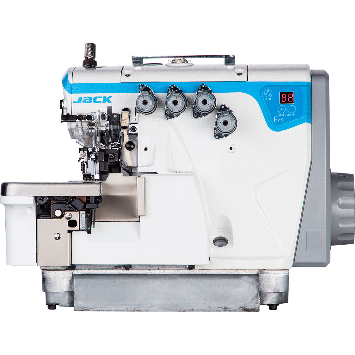 Overlock JACK E4S tiene un panel simple para ajustar la velocidad de costura y la posición de la aguja, así como la capacidad de volver rápidamente a la configuración de fábrica.