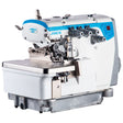 Máquina de coser industrial JACK E4S-3-32R2/223 con dobladillo enrollado de 3 hilos, ensamblada con configuración de mesa completamente sumergida incluida