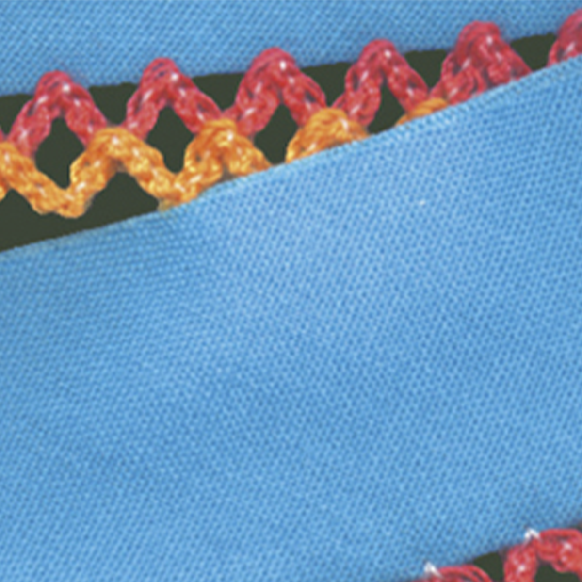 Decorative finishing of the edges of materials using one or two needles, most often used in children’s clothing.