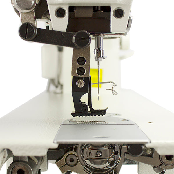 The machine's powerful top & bottom feed demonstrates its performance when sewing car fabric seats. The lift of the presser foot is as high as 16 mm, which responds to the sewing of heavy-weight materials.